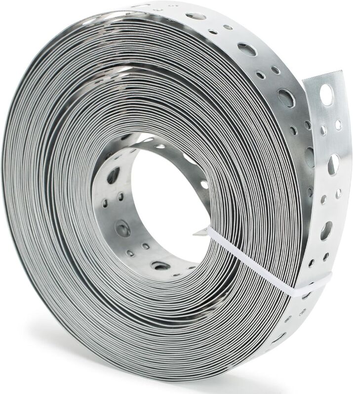Axisculpt Cordon d'acier galvanisé avec trous pré-percés alternatifs de 1/4 pouce ou 3/17 pouces, conçu pour fixer en toute sécurité des tuyaux de différentes tailles.
